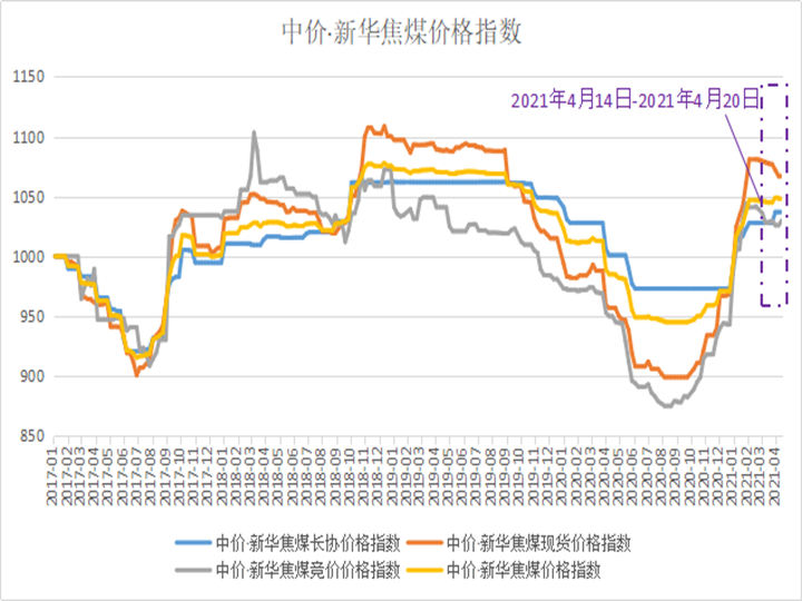 新华财经北京4月21日电(郑豪)本期(4月14日-4月20日)焦煤市场整体稳定,中价·新华焦煤价格指数平稳运行。具体来看,综合指数报1048点,长协指数报1037点,现货指数报1067点,均较上期持平;竞价指数报1030点,较上期上涨4点,涨幅0.39%。