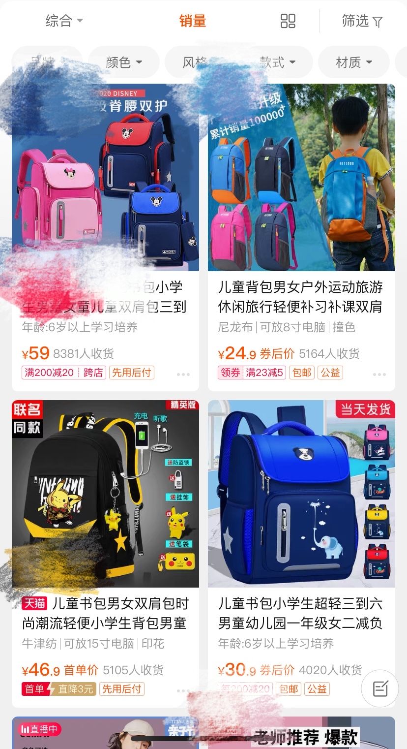 目前含有塑料的书包在市场上占有相当大的比例。记者在某大型电商销售平台上看到,销售量排在前50名的书包,绝大多数含有塑料材料。业内专家指出,监管部门应及时制定相关安全标准,防止塑料书包等日常消费品中短链氯化石蜡超标。