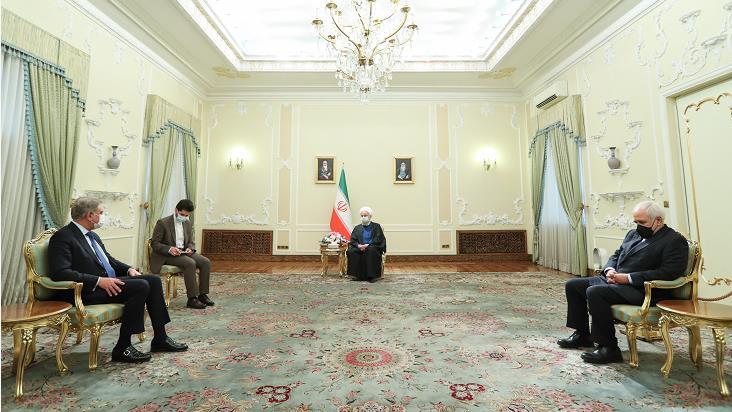 鲁哈尼在会见中表示,伊朗重视与巴基斯坦这一邻国的合作,愿深化两国关系以及经贸、边境市场等各领域合作。鲁哈尼就美国决定自阿富汗撤军表示,美在地区的军事存在无助于维护安全稳定,伊巴作为阿富汗最重要、最有影响力的邻国,应通过合作为推动阿和平进程发挥自身作用。