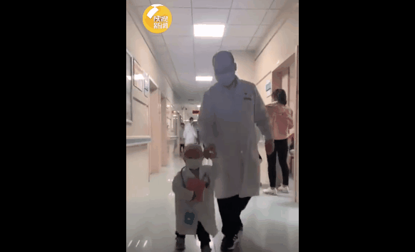 2岁的男孩涛涛被确诊为“病毒性脑膜炎”,经过两个多月的治疗,涛涛的病情好转,涛涛说他想当医生,每天涛涛穿着“白大褂”戴着“听诊器”,有模有样地跟在医生后面,在病区里“查房”,目前涛涛已经病愈出院。