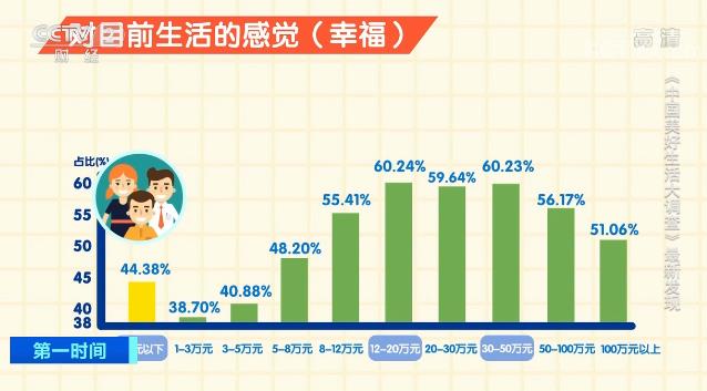 中国人一年赚多少钱才会感到幸福呢?大调查发现,幸福感不全由收入高低决定。个人年收入10000以下的人群,幸福感就不是最低的。而幸福感相对最高的群体年收入在12—20万之间。超过50万的人群随着收入越高,幸福感还会逐渐下降。