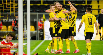 第27分钟,多特蒙德获得一粒有争议的点球,哈兰德的射门和补射均被门将挡出,但罗伊斯再次补射把球送入网窝。比赛即将结束之际,格雷罗面对门将左脚劲射得分,确保了比赛胜利。多特蒙德积52分排名第5,距离欧冠席位区相差4分,仍有望拿到欧冠联赛入场券。