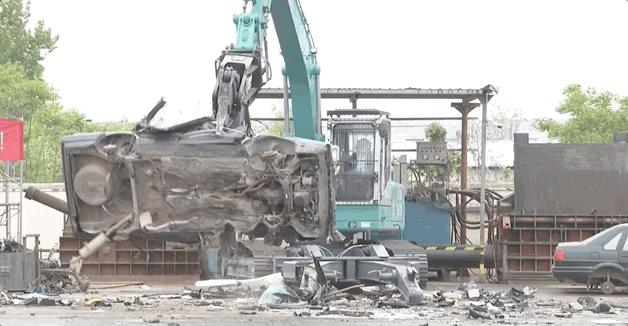 记者在现场了解到,这些汽车在被专业机械拆解之前,已经做了更加精细的预处理,确保易燃、易爆和重金属等对环境有害的部件提前拆除报废。