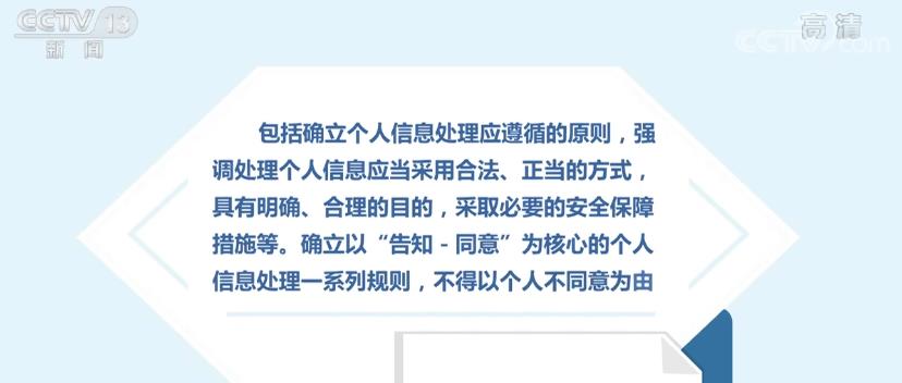 个人信息保护事关广大人民群众的切身利益。发言人介绍,针对个人信息收集和使用环节出现的种种乱象,将在有关法律的基础上进一步完善相关制度规范:包括确立个人信息处理应遵循的原则,强调处理个人信息应当采用合法、正当的方式,具有明确、合理的目的,采取必要的安全保障措施等。确立以“告知-同意”为核心的个人信息处理一系列规则,不得以个人不同意为由拒绝提供产品或者服务。设专节对处理敏感个人信息作出更严格的限制,只有在具有特定目的和充分必要性的情形下,方可处理敏感个人信息。明确个人在个人信息处理活动中的各项权利,包括知情权、决定权、删除权等。