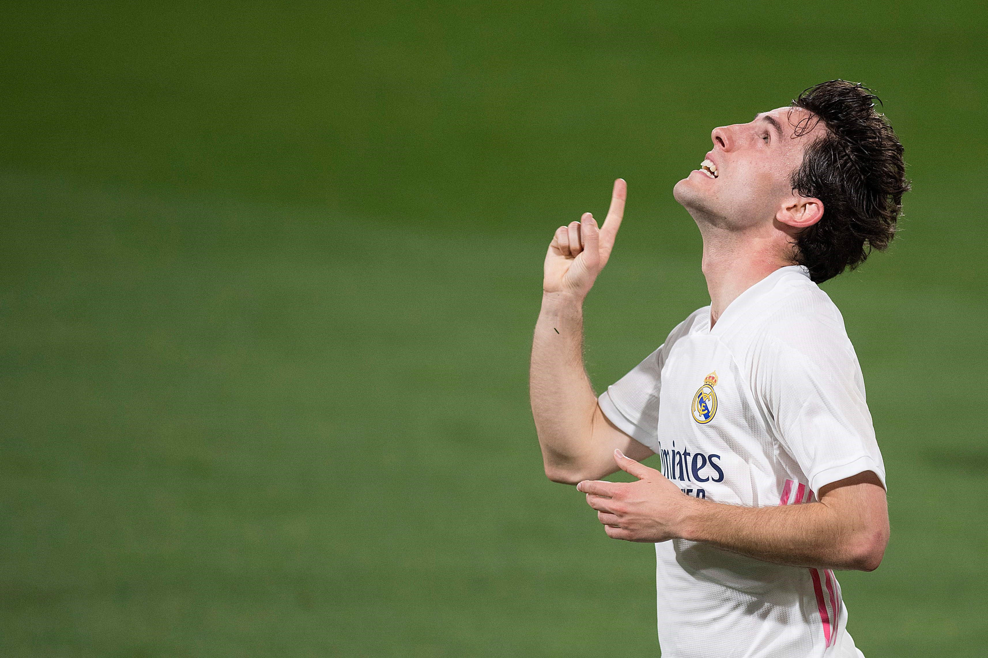 4月21日,皇家马德里队球员奥德里奥索拉庆祝进球。新华社发