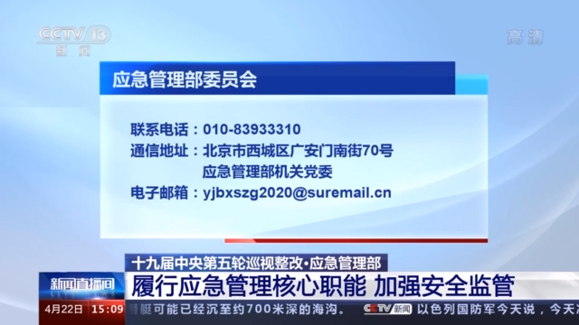 在公布整改情况的同时,应急管理部委员会还公开了联系方式,接受社会监督。