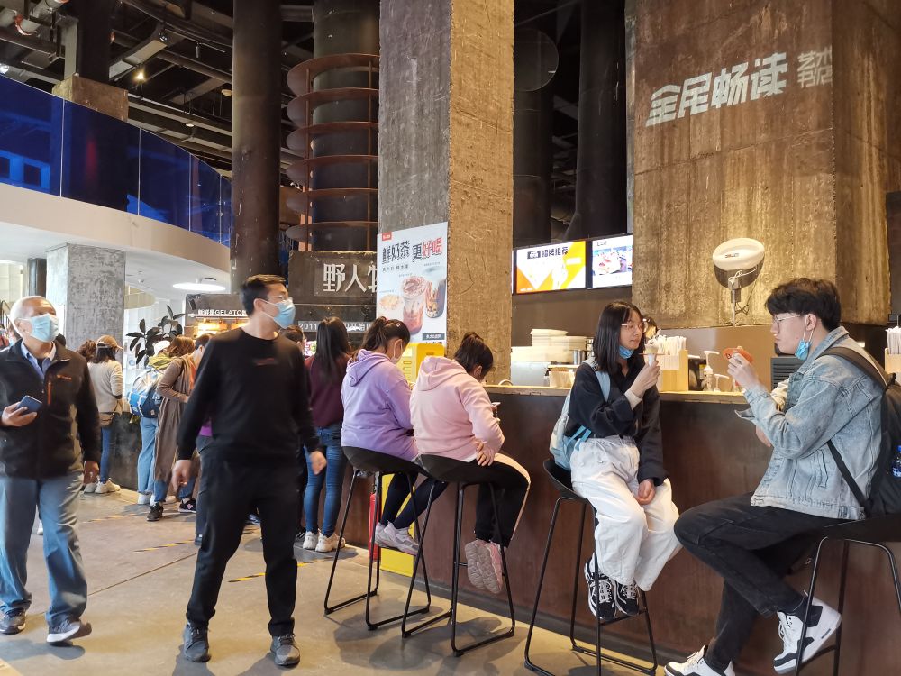 不少人慕名而来,但很多单纯只是来首钢园观光的人,进门前并不知道这里是家书店,甚至进门后也不知道——在这个号称是书店的地方,占地面积最大的区域是餐吧。