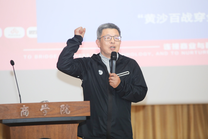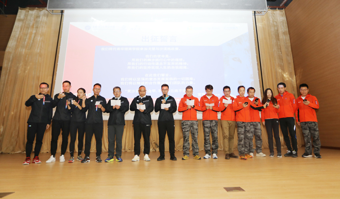 出征仪式上,商学院院长马铁驹首先致辞,他希望大家磨炼意志,找到更坚强的友谊,升华对生活的感悟,载誉平安归来。副院长侯丽敏表示一年又一年送同学们出发,迎接大家凯旋,希望戈16与沙10战队将华理精神完美传承、顺利完赛。