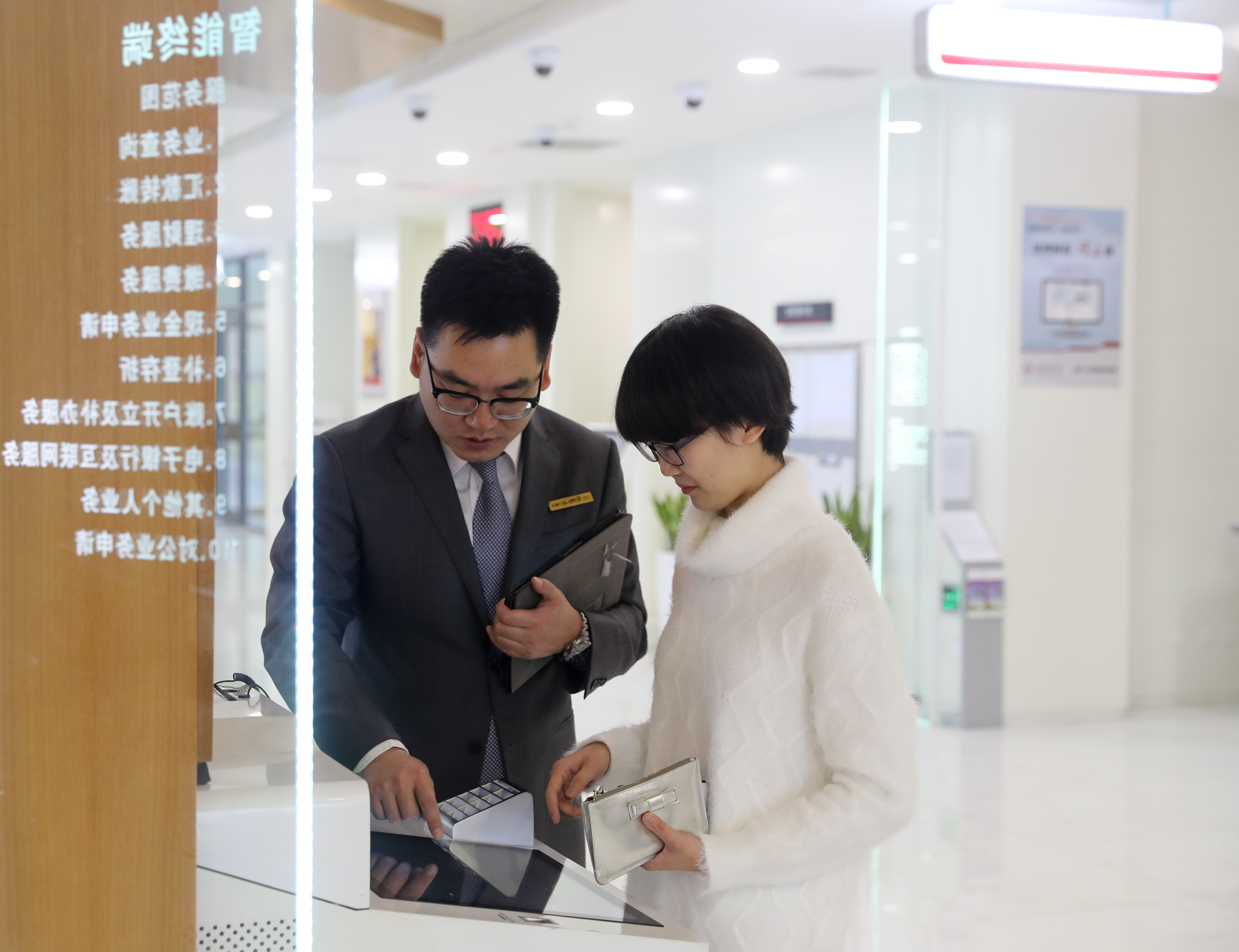 一银行网点工作人员在协助客户办理Ⅱ类账户银行卡。新华社发