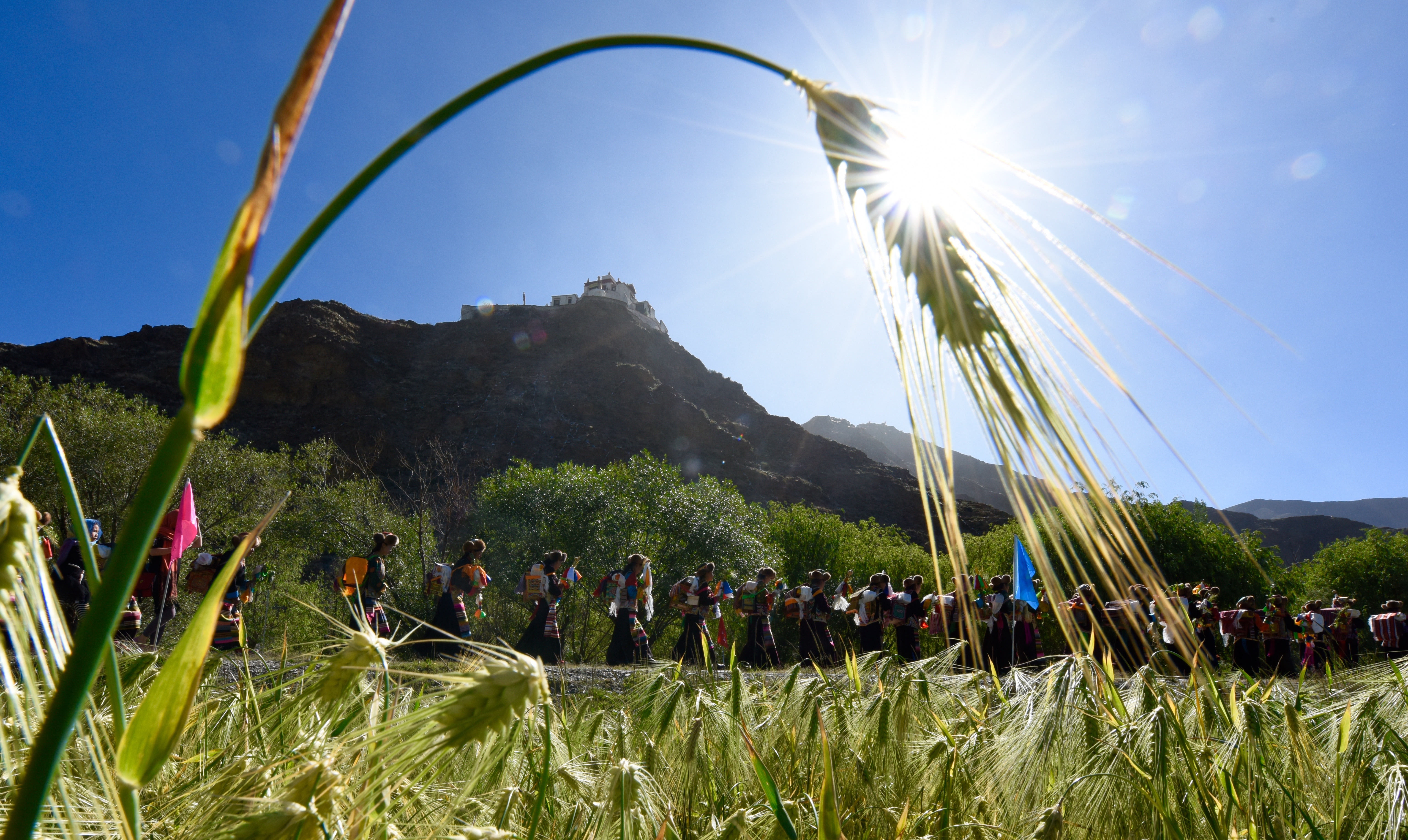 西藏山南市乃东区昌珠乡老百姓举行一年一度的转田祈福活动(2015年7月28日摄) 新华社记者普布扎西 摄