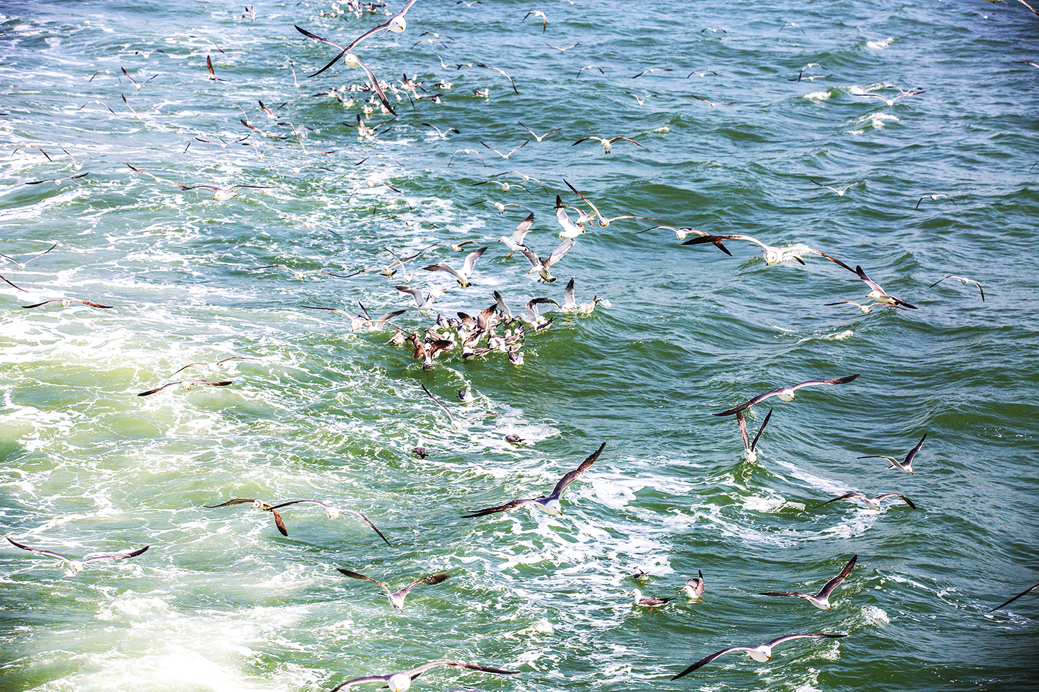图8:天蓝海碧,海鸥嬉戏。新华网发(刘广生 摄于山东长岛)