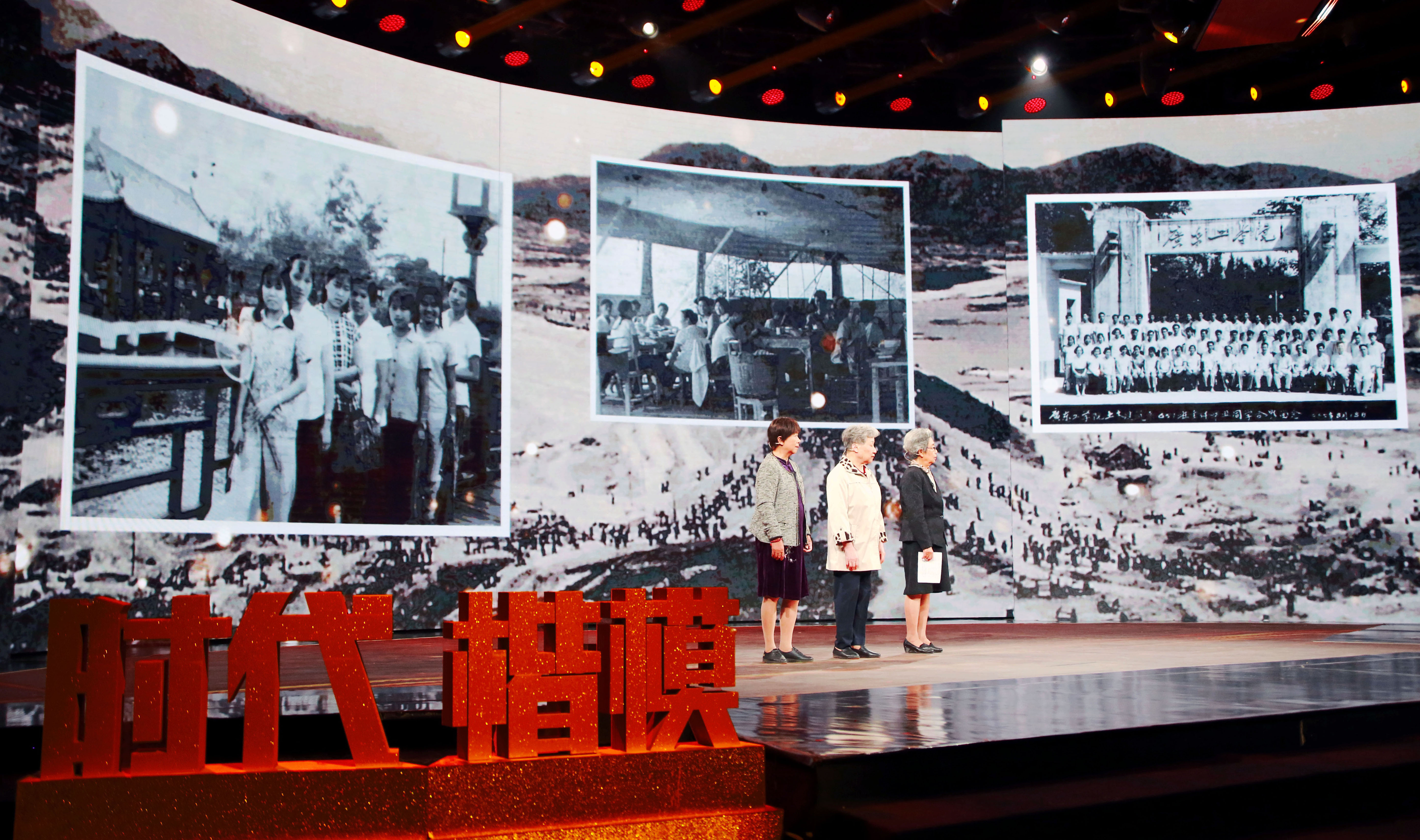 三名东深供水工程建设者代表在“时代楷模”发布仪式上。新华社记者 潘旭 摄