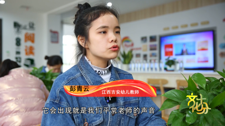 江西省吉安市幼儿教师 彭青云:像它在里面讲故事、儿歌,它会出现就是我们平常老师的声音,就声情并茂,它的语速、语调都有变化,让我们学到了很多东西。