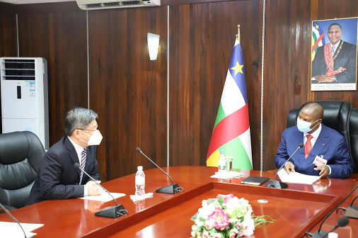 当地时间4月21日,我驻中非大使陈栋赴中非共和国总统府拜会图瓦德拉总统,双方就两国各领域务实合作重大事宜进行了全面细致交流。