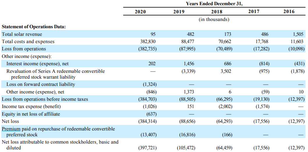 同属于新能源汽车阵营,与选择蓄电池供电路线的特斯拉不同,Nikola坚持的是氢燃料电池供电。根据公司日前披露的2020年年报,报告期内太阳能板的销售及安装服务是公司收入的主要来源,其氢能电车板块未开始大规模销售,导致公司出现较大幅度的经营亏损。