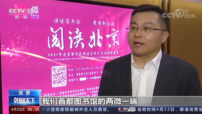 首都图书馆馆长 王志庚:可以上我们首都图书馆的“两微一端”,线上看我们的直播,线下可以通过预约,进入到我们馆舍里来,参加我们线下的展览、讲座、读书会、儿童的互动性的活动。