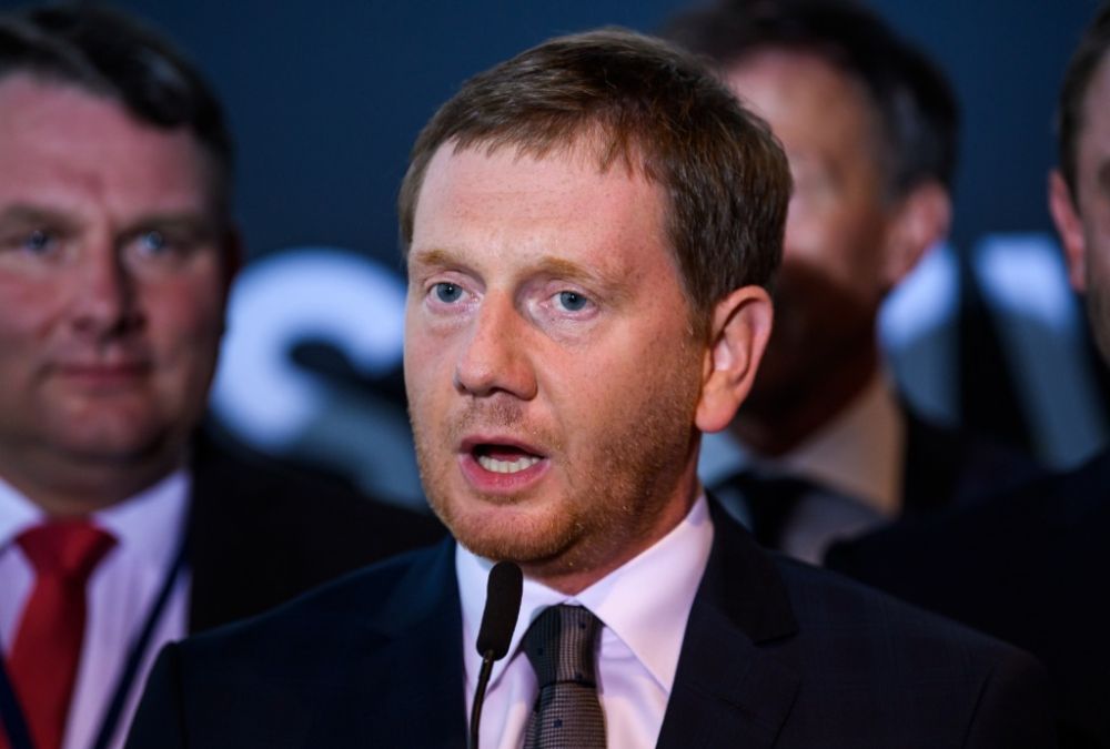 2019年9月1日,在德国德累斯顿,萨克森州州长克雷奇默在选举初步结果公布后发表声明。(新华社发,凯文·福格特摄)