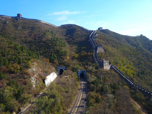 航拍京张铁路居庸关段。新华社记者 邢广利 摄