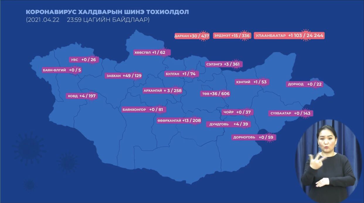 △蒙古国23日国内疫情情况分布图(图片来源:蒙古国卫生部官网)