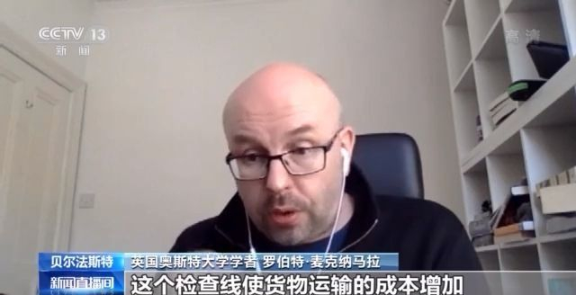 英国奥斯特大学学者 罗伯特·麦克纳马拉:这个检查线使货物运输的成本增加,而且具体的运行机制和造成的后果并没有向北爱尔兰地区的居民讲清楚。检查线使货物运输困难,居民们很难获得食物等必需品,所以他们都非常震惊,没有预料到这个后果。我们看到,北爱几个主要进口海关,都已经拉响了警报。
