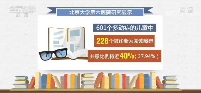 北京大学第六医院的一份研究显示,601个多动症的儿童中,有228个被诊断为阅读障碍,共患比例将近40%(37.94%)。研究发现,阅读障碍有一些跟其他孩子不一样的神经生物学指标。