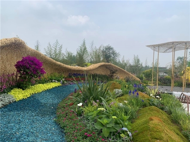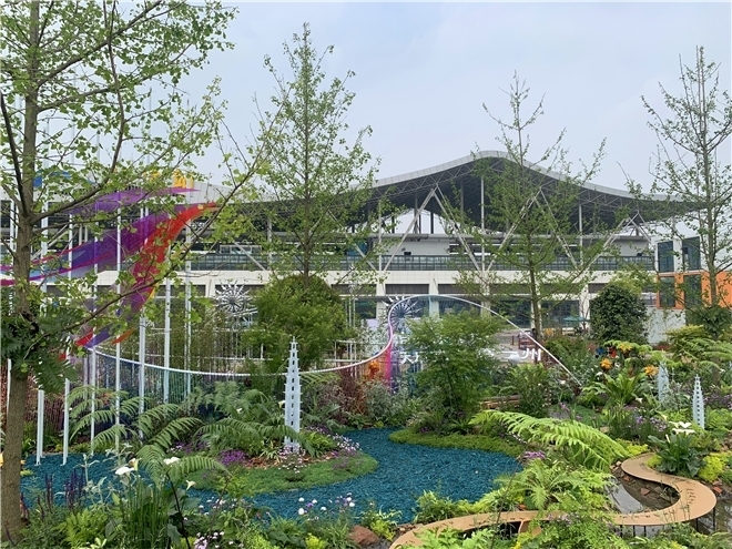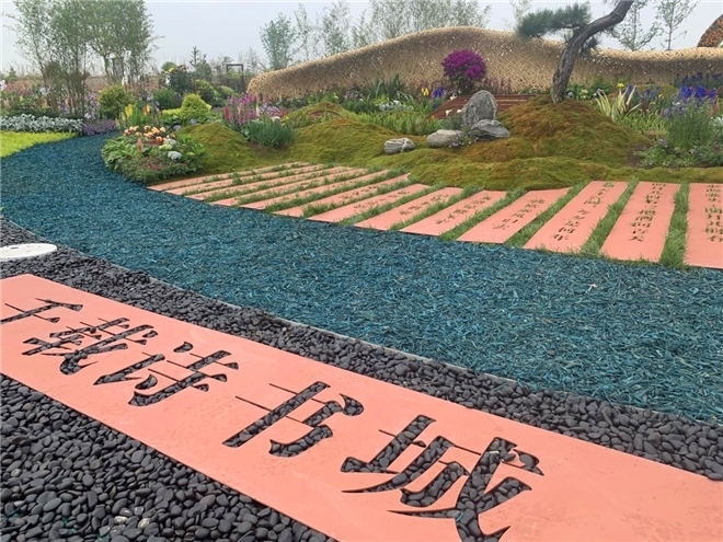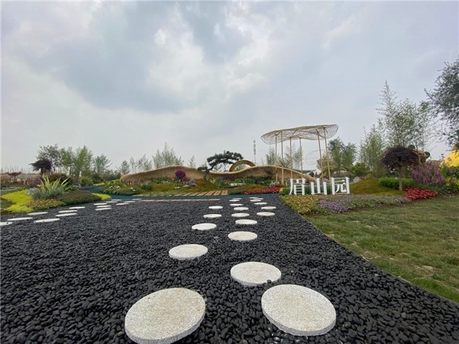 眉山展园核心为千载诗书城,将现代西方花境艺术与东方古典文化的融合,突出眉山人文与自然、传统与现代、东方与西方相结合的特点,塑造文景相融的城市文态、山水相映的城市绿态、商贾云集的城市业态,形成眉山园的特色,展现眉山“文化城、公园城、活力城”魅力。