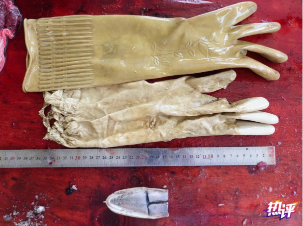 “我们剖开海豚的胃,找到了杀死它的凶手”。不久前,一位博主在网上晒出的真实故事让人心痛。广东湛江一头雌性瑞氏海豚在海边搁浅后死亡,一名参与解剖这头海豚的博士称,它的胃里有两只淡黄色橡胶手套,而且还不是同一副,一只已经破了,另一只完好,“我们推测它可能误食,导致胃部阻塞无法正常进食,最终搁浅”。这样的细节让人默然,这样的悲剧让人黯然。