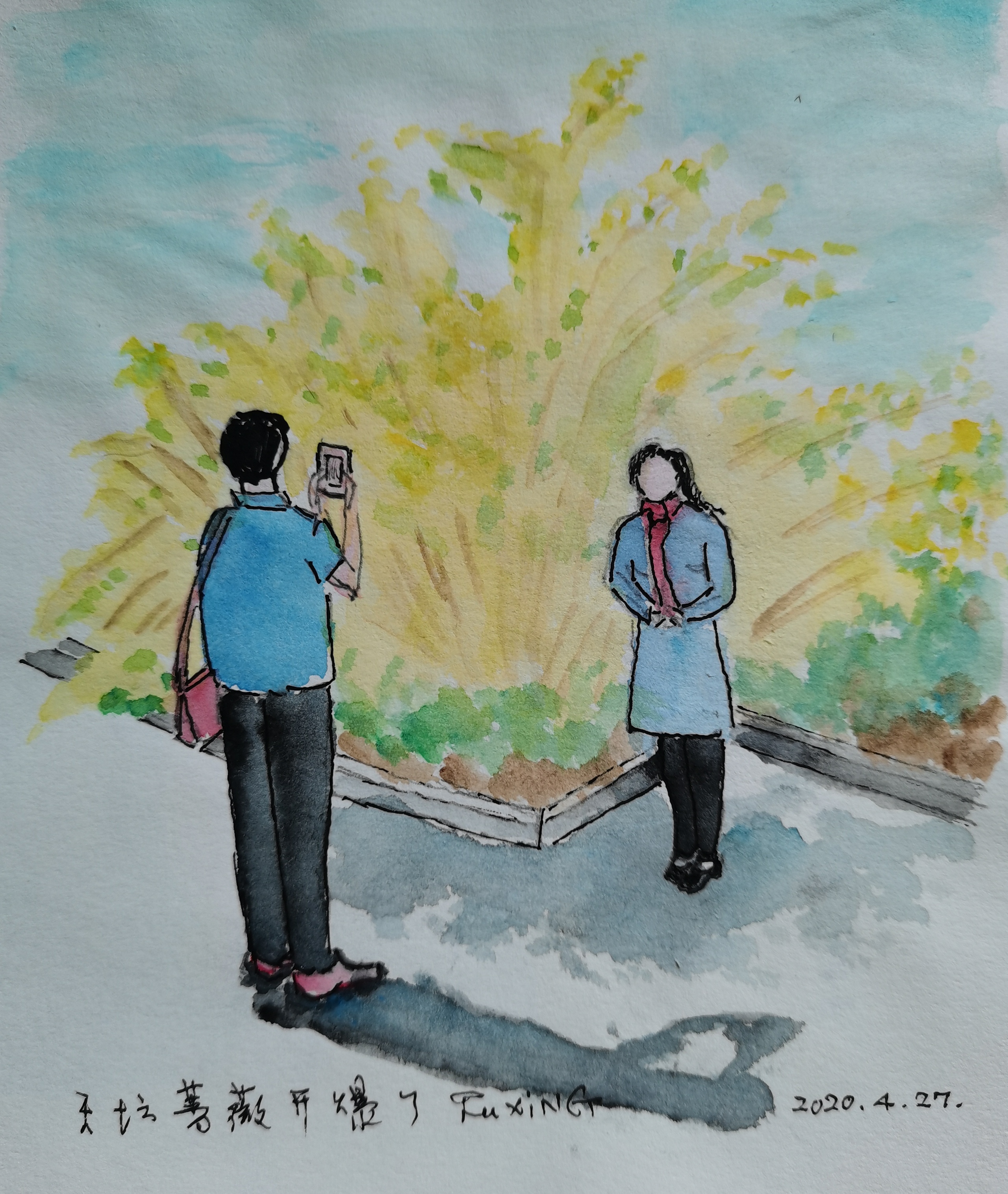我们边走边说着话,走出北天门,一起朝北门走去。我弄清楚了,是等他的女朋友。也许,还谈不上什么女朋友,2019年11月网上认识的,第一次约会便是在天坛,说是看天坛的银杏,再不看,金黄色的银杏叶就都快落光了。见了面,长相呀,个头呀,年龄呀,工作呀,彼此都挺满意的。元旦时候,又见了一面,一起看了场电影,吃了顿饭。春节前工作忙,就约好等着过春节时再见面。没等到春节,疫情来了,都封闭在家里办公了,联系只有靠电话和微信。这么着,一耗耗到了五一节,小半年的时间,只见过两次面。虽然古诗词里说是“两情若是久长时,又岂在朝朝暮暮”,但那只是属于古典式或理想中的爱情,只适合在诗词大会上背诵,仅靠电话和手机短信维持的爱情,如此脆薄得不堪一击。