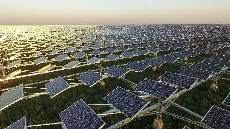 宁夏,茫茫戈壁,排列整齐的光伏板一眼望不到头。