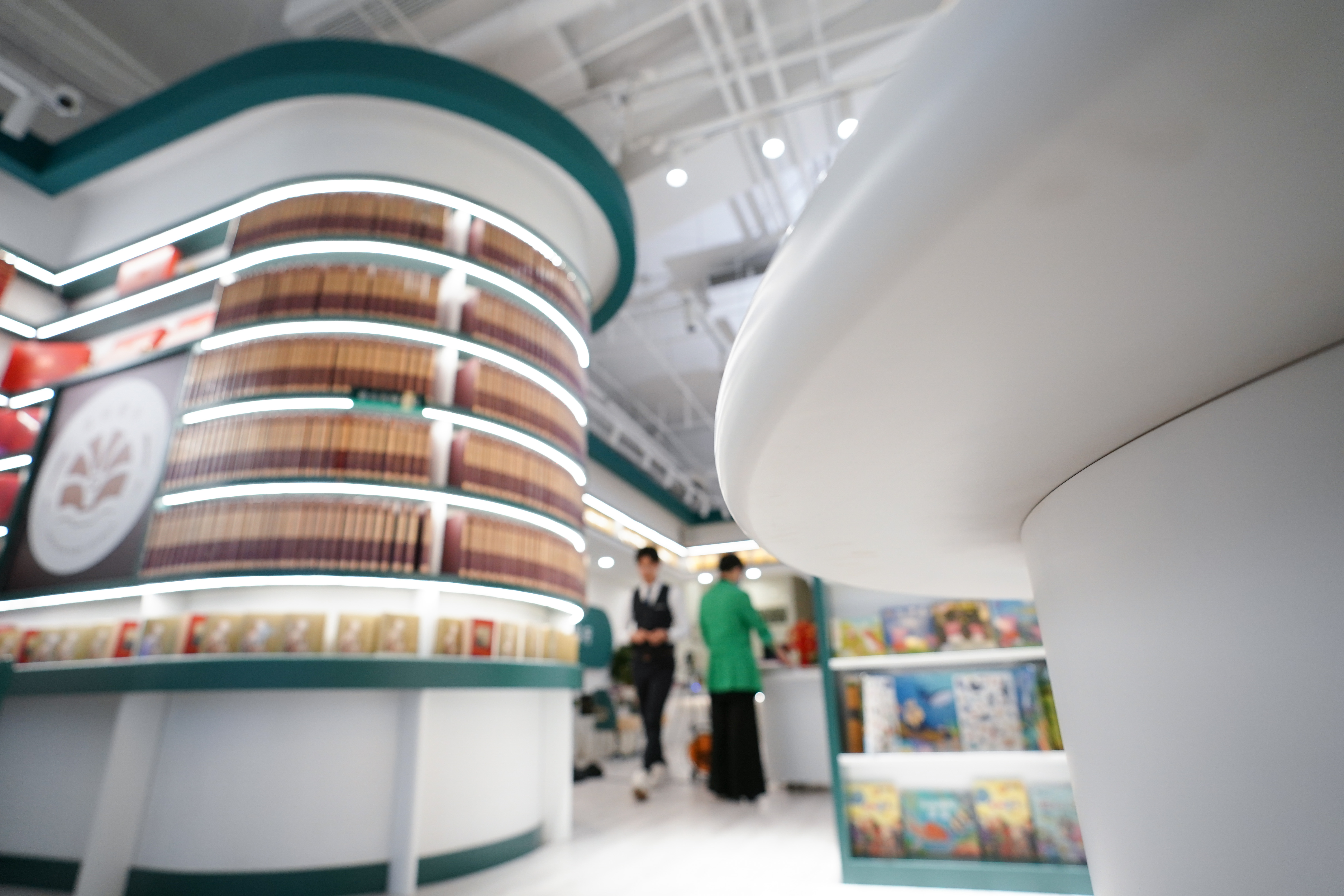 善缘书舍的书架边缘呈弧形,而非棱状。这样的设计是基于“逢角必圆、逢坎必平”的无障碍设计理念。新华社记者 鞠焕宗 摄