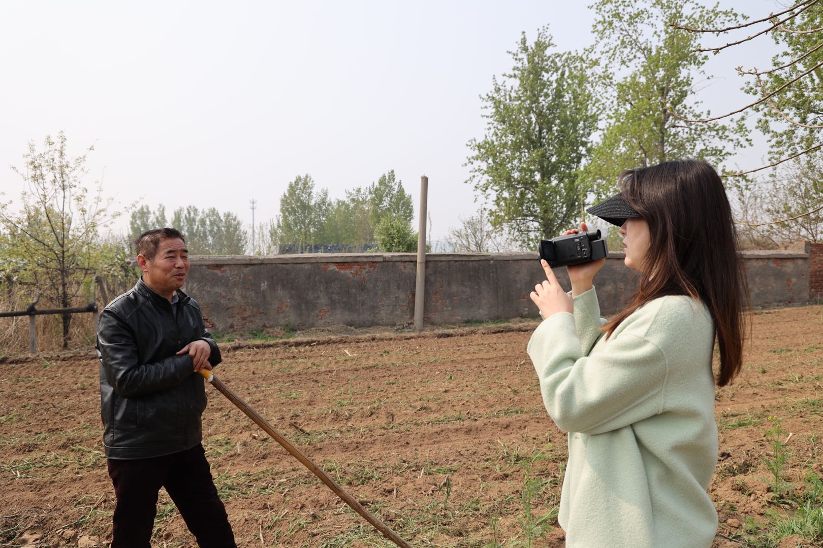 新华社记者王秋韵在吕村采访当地村民。(摄影:任卓如)