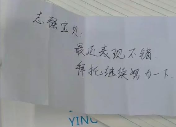 原来纸条里是老师对他的鼓励: