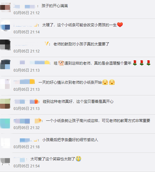 网友也评论说:好暖!这张纸条可能会被小男孩珍藏起来
