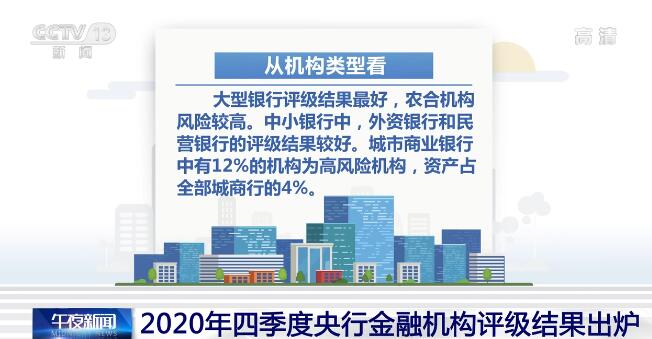 央视网消息:中国人民银行23日表示,2020年四季度,人民银行完成了对4399家银行业金融机构的央行评级,评级结果总体稳定,大部分机构评级结果在安全边界内,“红区”高风险机构数量显著下降。