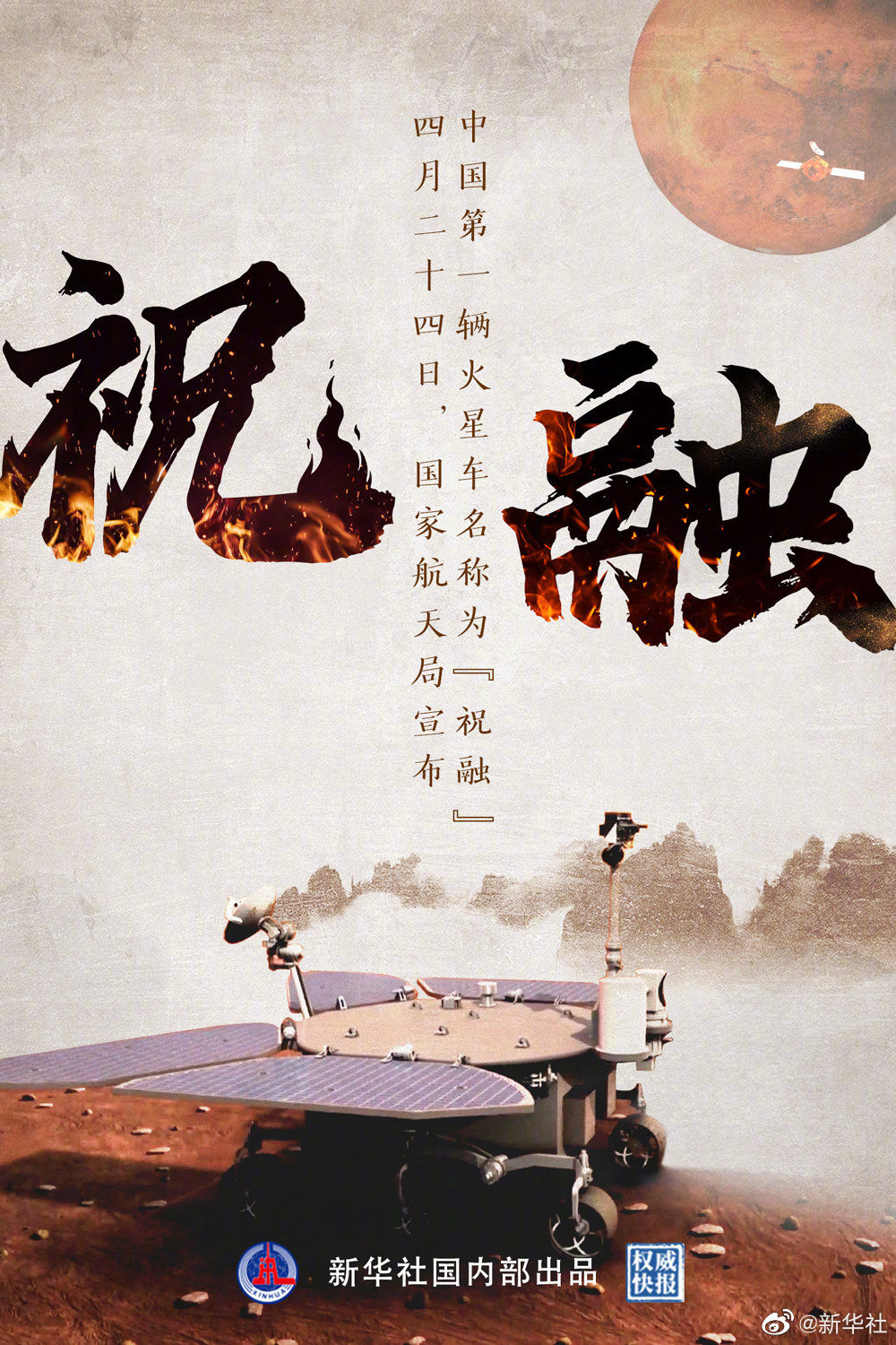 【权威快报 | 我国第一辆火星车命名祝融】4月24日上午,中国第一辆火星车命名揭晓,名称为“祝融”。祝融是中国上古神话中的火神,火的应用促进了人类文明的发展,驱散黑暗、带来温暖。火也将照亮鸿蒙,指引人类不断探索浩瀚星空,引领人类追逐“永远的光明”。