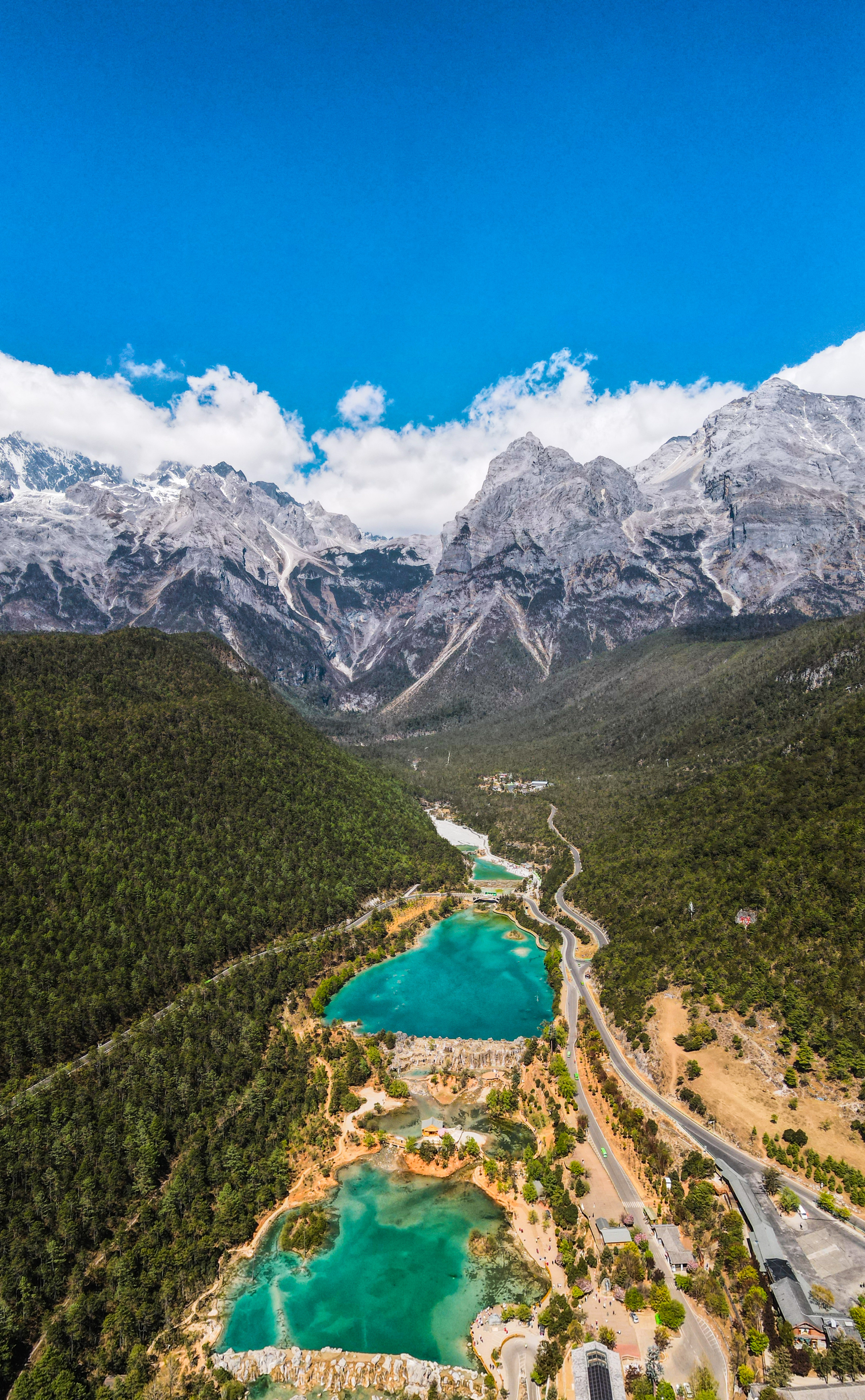 这是4月23日拍摄的玉龙雪山和蓝月谷(无人机照片)。