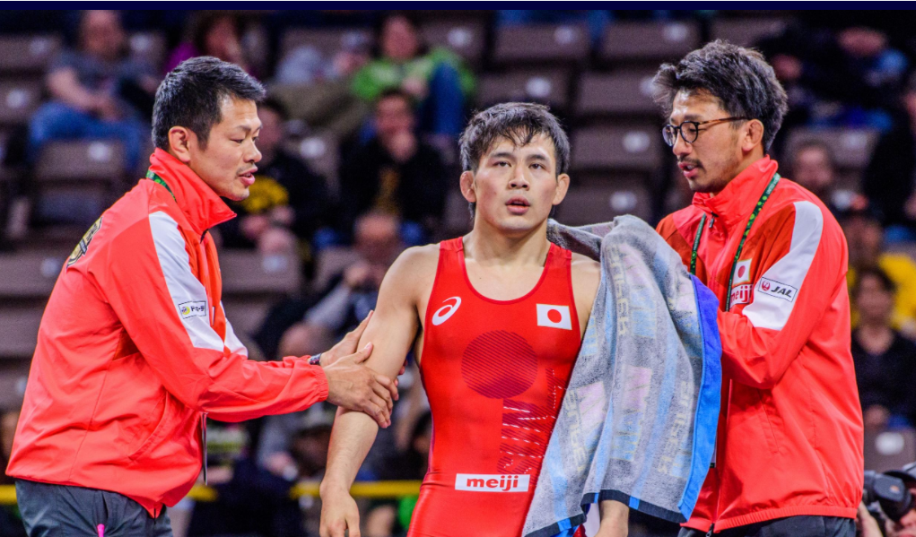 4月13日,参加奥运预选赛的日本选手。世界摔跤联合会官网图片