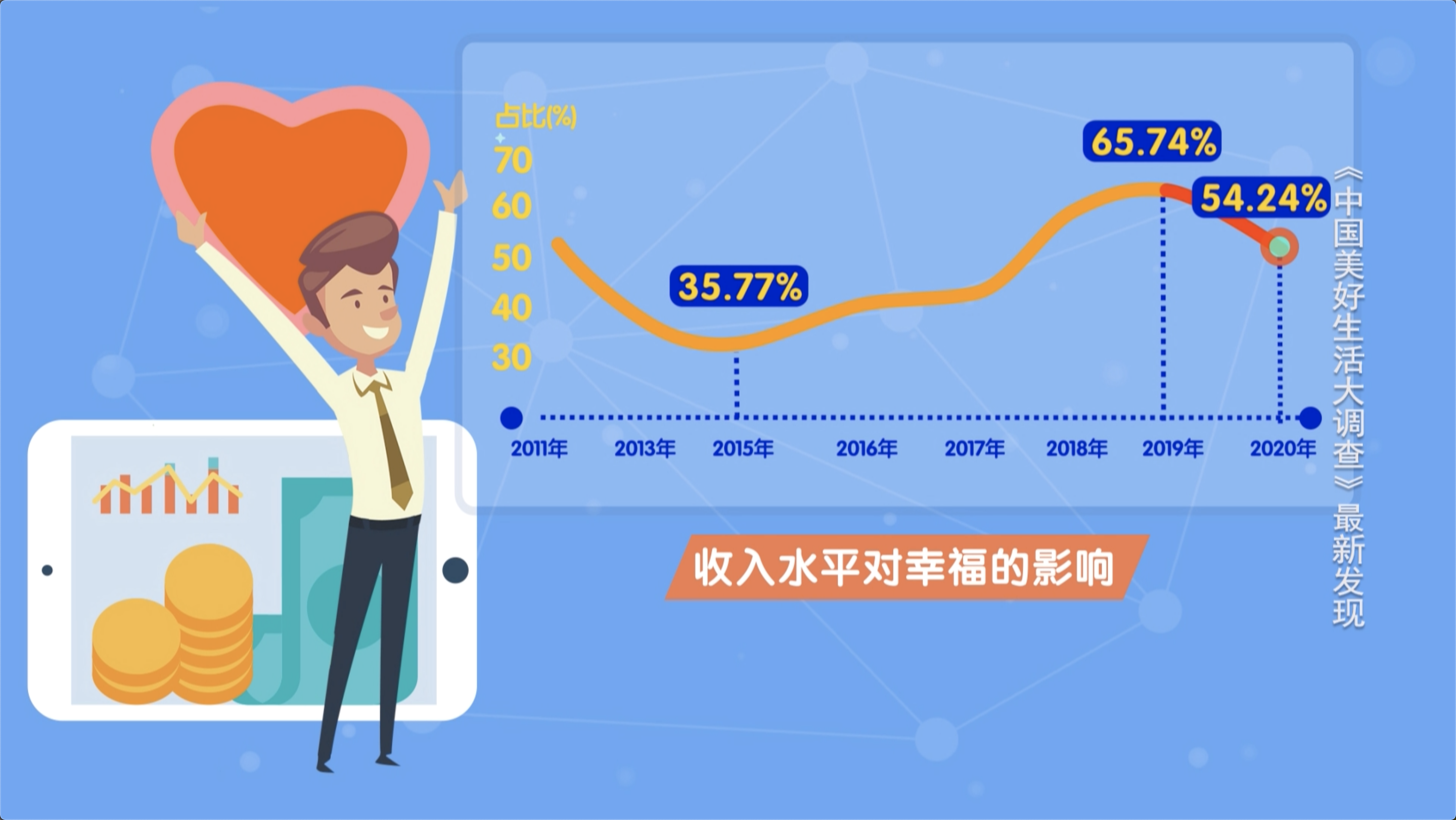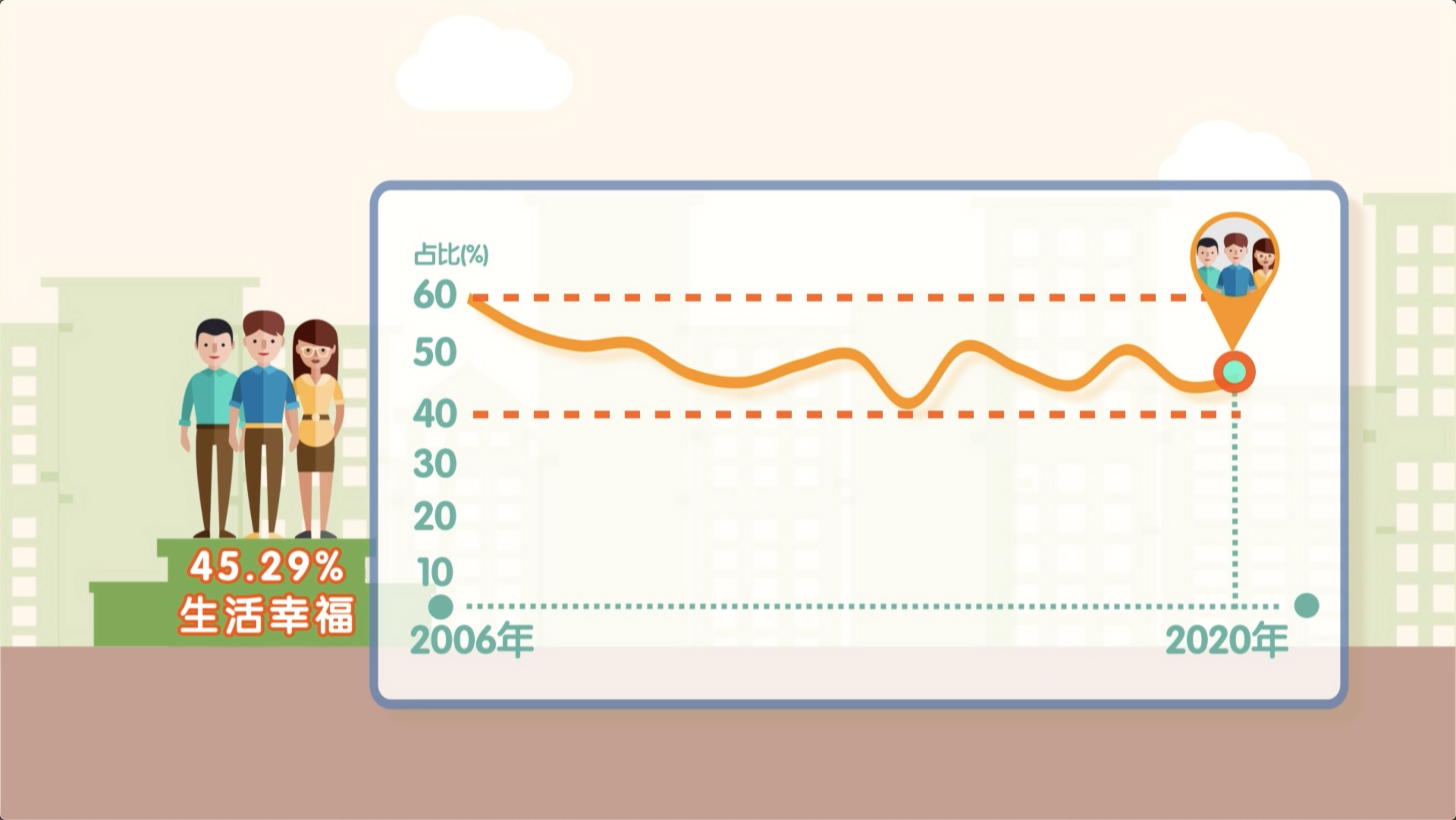 《中国美好生活大调查(2020—2021)》发现,虽然疫情给人们的生活和生产带来很大影响,但2020年,中国人整体的幸福感与前一年相比并没有降低,45.29%的人认为自己生活幸福,在中国人15年幸福曲线上处于居中的位置。
