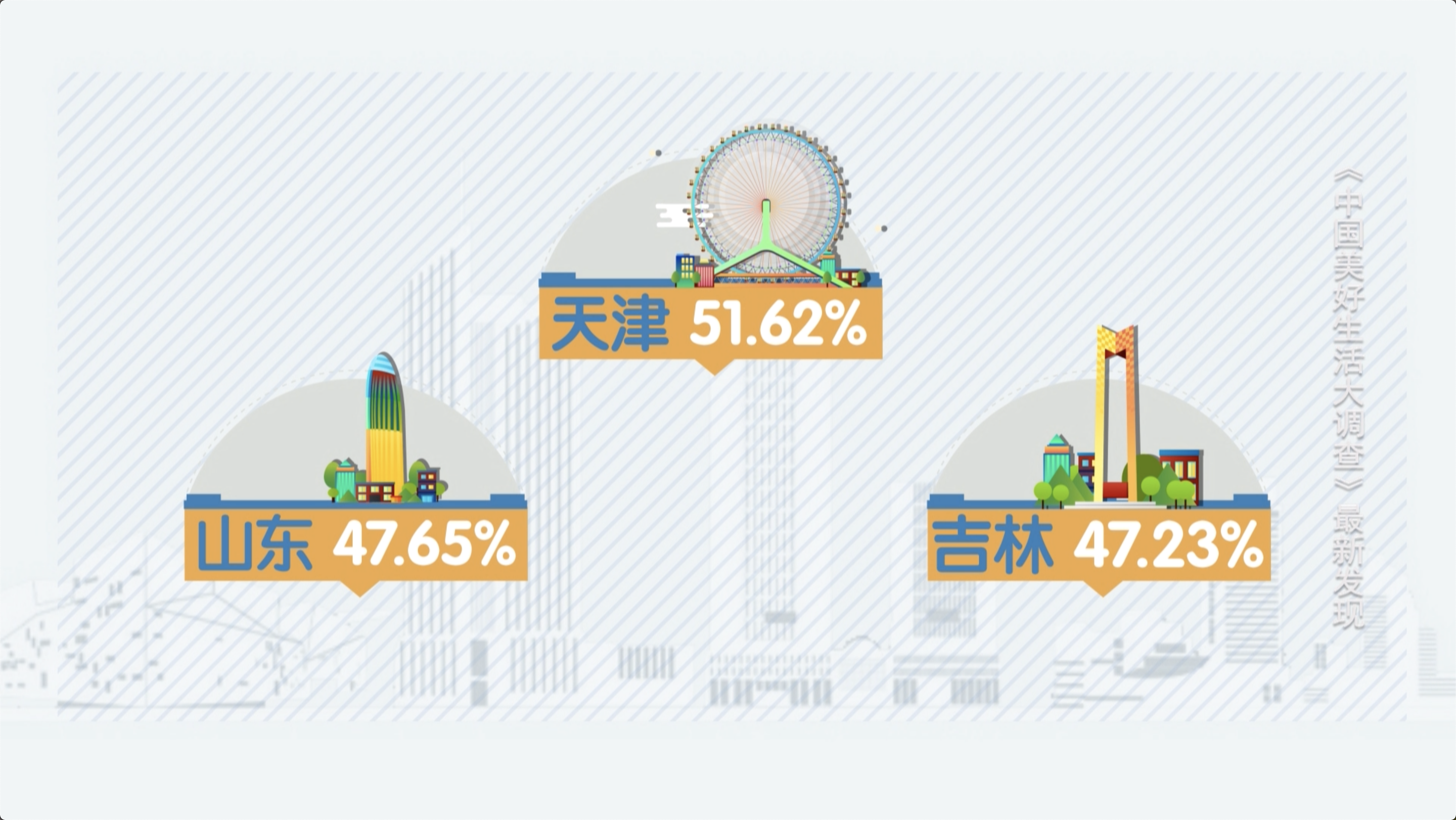排在前三位的是天津(51.62%),山东(47.65%),吉林(47.23%),家和万事兴,家庭关系在中国的幸福文化影响力早已根深蒂固。