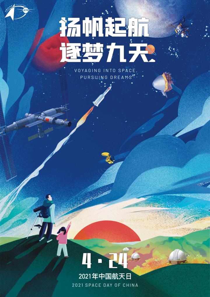 4月19日,国家航天局正式发布2021年中国航天日宣传海报,兰州大学艺术学院大三学生王淑君设计的作品成功当选。(图片来源:国家航天局)
