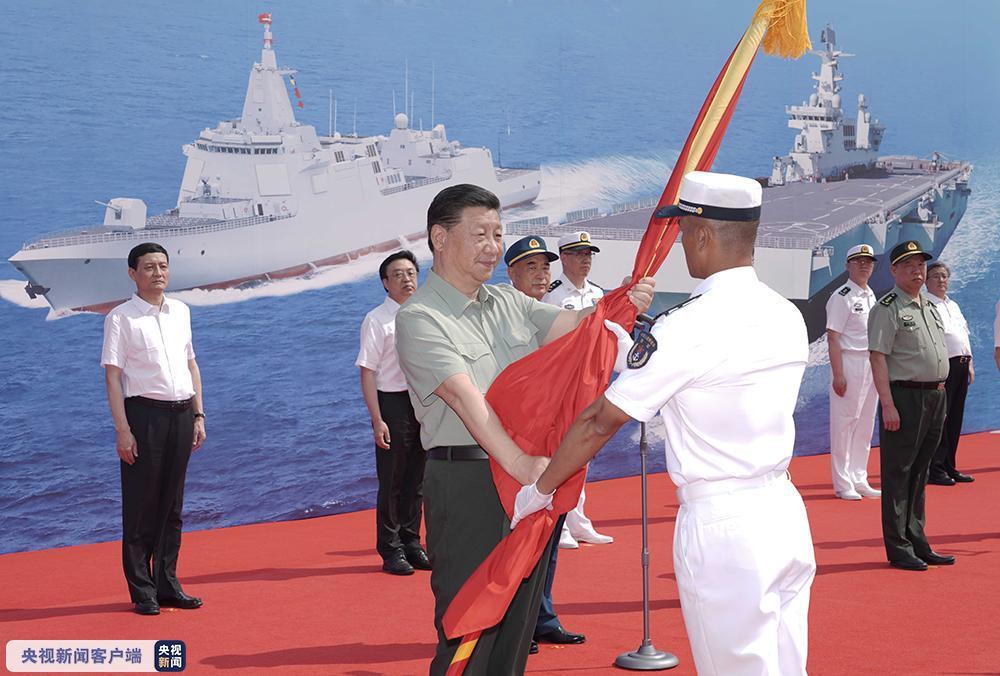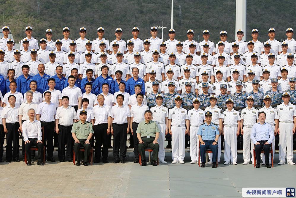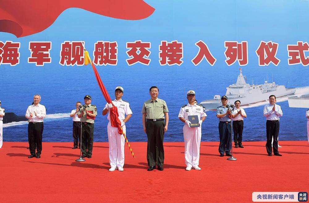 海军三型主战舰艇——长征18号艇、大连舰、海南舰23日在海南三亚某军港集中交接入列。中共中央总书记、国家主席、中央军委主席习近平出席交接入列活动。