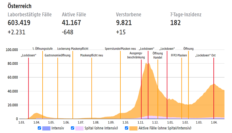 据奥地利卫生部24日公布数据,奥地利奥地利新增新冠肺炎确诊病例2231例,累计确诊603419例。累计死亡9821例,新增15例。现存病例41167例,已有552431例康复病例。目前有1356例病例接受住院治疗,还有518例在重症监护病房。(总台记者 朱赫)