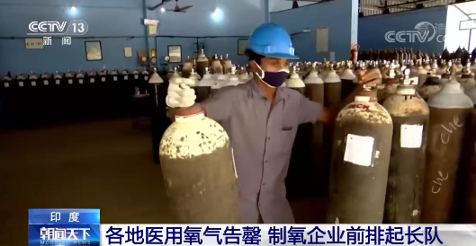 由于需求量大、供不应求,许多制氧工厂已不堪重负。在印度北方邦首府勒克瑙的一家制氧厂前,许多医务人员、社区工作人员还有普通市民,都带着空的氧气罐在工厂外排起长队。