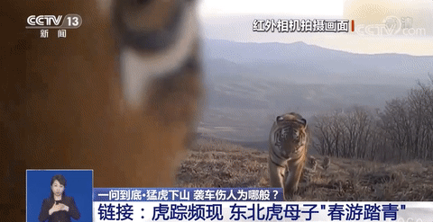 近几年,随着生态环境越来越好,老虎时常出没。本月中旬,吉林省珲春市东北虎豹国家公园监测系统就拍到了一只东北虎妈妈,带着三个虎娃巡山的视频,这也是目前监测到的最新东北虎家族。