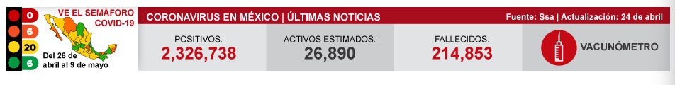 当地时间4月24日,墨西哥卫生部宣布,截至24日19时,墨西哥全国累计新冠肺炎确诊病例2326738例,较前一日新增3308例;新增349例死亡病例,累计死亡214853例。(总台记者 盛嘉迪 吕兴林)