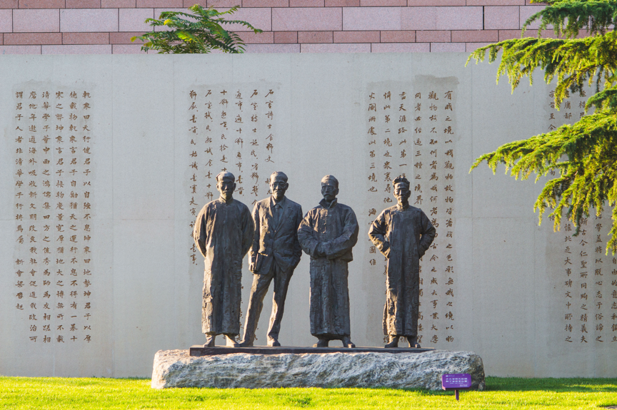 位于清华大学校园内的国学四大导师像。清华大学供图