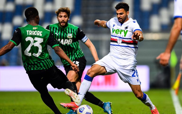 比赛伊始,萨索洛前锋贝拉尔迪凌空劲射被门将飞身化解,桑普球员扬克托射门则击中立柱。第26分钟,萨索洛球员特拉雷奥在一次反击中单刀破门,但因越位被吹无效。