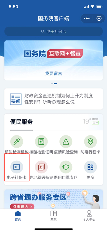 微信小程序“电子社保卡”