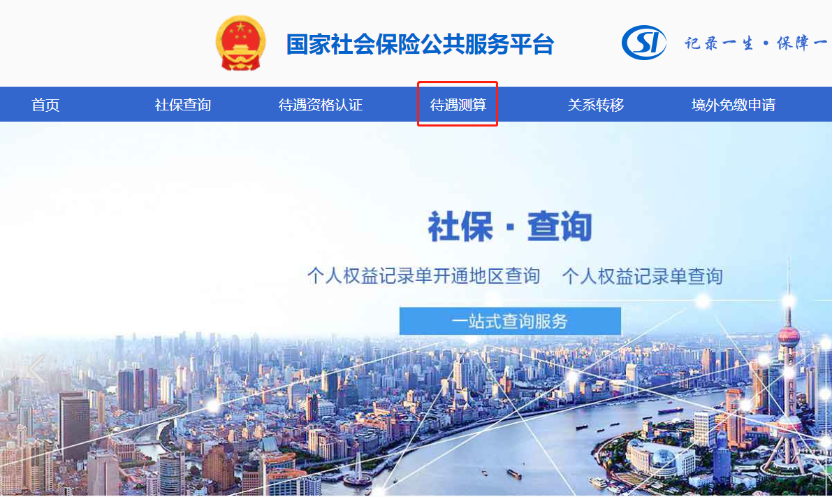 ①登录国家社会保险公共服务平台(http://si.12333.gov.cn),进入“待遇测算”栏目。