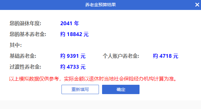 系统显示,李先生将在2041年退休,月基本养老金为18842元。